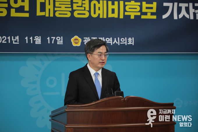 김 후보는 광주시의회에서 기자회견을 하고 "거대 양당으로부터 작년 총선에 좋은 조건을 받았다. 금년 초 서울시장 보궐선거에서도 권유받았다. 몇 달 전 양당으로부터 대선 경선 들어오라는 제의를 받았고 총리 제의까지 받은 것을 거절했다"며 "전부 마다하고 이 길을 택한 것은 완주 의지를 보여준 것이다"고 이같이 완주 의지를 밝혔다.