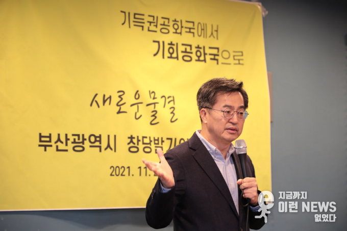 이런뉴스 김삼성 기자 | 대권 주자 김동연 전 경제부총리는 21일 오후 부산·경남에서 열린 새로운물결 창당발기인대회에 참석해 “영남이 지지하는 충청후보가 될 것”이라고 말했다.