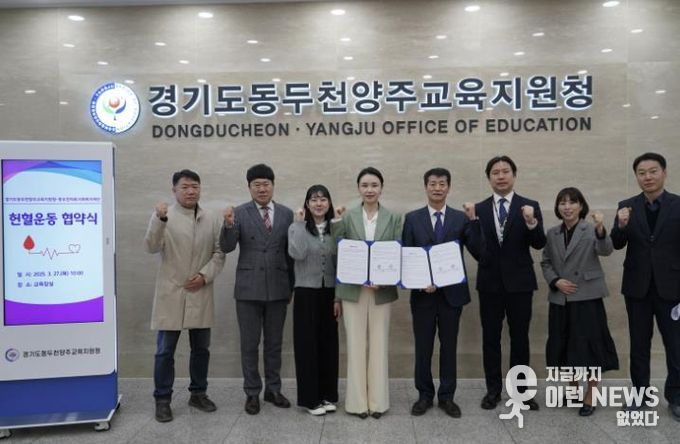 이런뉴스(e-runnews) 김삼성 기자 | 동두천양주교육지원청은 3월 27일, 교육지원청 교육장실에서 동두천의료사회복지재단과 ‘헌혈운동 협약’을 체결했다.