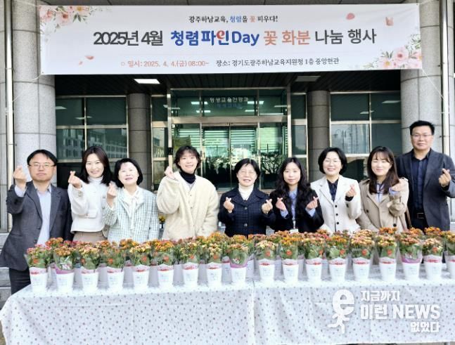 2025년 광주하남교육지원청 청렴 프로젝트인‘청렴 파인 Day’의 일환으로 진행된 4월 청렴 꽃화분 나눔행사는 식목일을 맞아 ‘청렴을 새롭게! 광주하남교육의 미래를 빛나게!’라는 청렴 슬로건을 부착한 꽃화분을 전 직원들과 나누는 행사로 진행됐다.