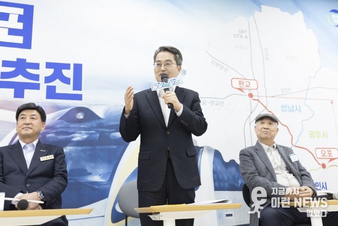김동연 경기도지사는 10일 광주시 신현행정문화체육센터(문화누리홀)에서 ‘판교~오포 도시철도’ 사업과 관련해 지역주민들과 간담회를 통해 소통했다. 간담회 이후에는 사업 현장을 찾아 사업 추진 상황을 점검했다.