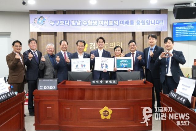 이런뉴스(e-runnews) 김삼성 기자 | 경기도의회 문화체육관광위원회(위원장 황대호)는 오늘 전국 약 55만 명의 수험생이 2025학년도 대학수학능력시험에 임하는 날을 맞아, ‘누구보다 빛날 수험생 여러분의 미래를 응원합니다!’라는 메시지를 전하며 모든 수험생들에게 따뜻한 격려와 힘찬 응원을 보냈다.