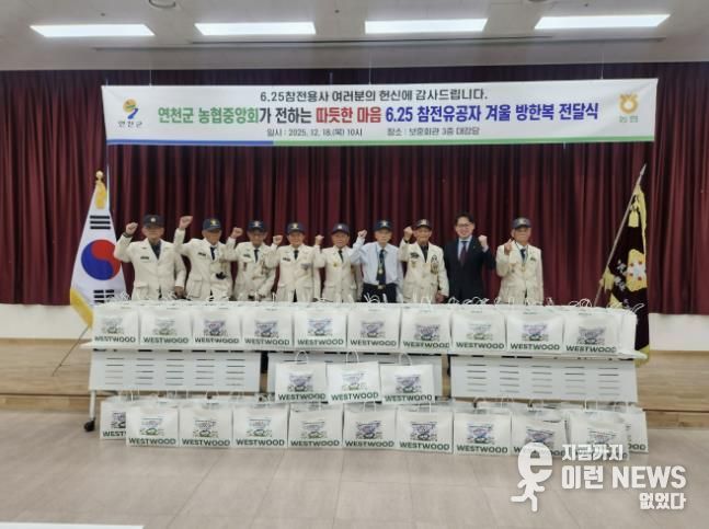 이런뉴스(e-runnews) 김삼성 기자 | NH농협 연천군지부는 18일 연천군 보훈회관에서 연천 관내 6.25 참전유공자에 감사와 사랑의 마음을 담은 600만원 상당의 위문품(동절기 방한복)을 전달했다.