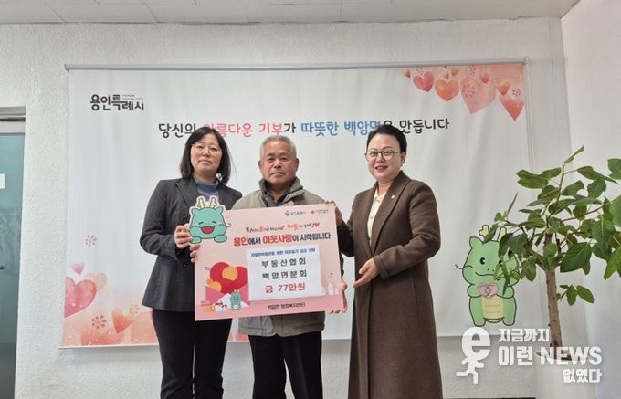 처인구 백암면 행정복지센터에는 지난 10일 공인중개사협회 백암면분회가 이웃돕기 성금 77만원을 기탁했고, 15일에는 ㈜오엠코리아가 300만원을 기탁했다.