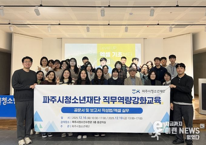 이런뉴스(e-runnews) 김삼성 기자 | (재)파주시청소년재단(대표 원희복)은 12월 3일부터 12월 19일까지 재단 소속 임직원의 실무 능력 강화를 위한 직무역량강화교육 진행을 완료했다.