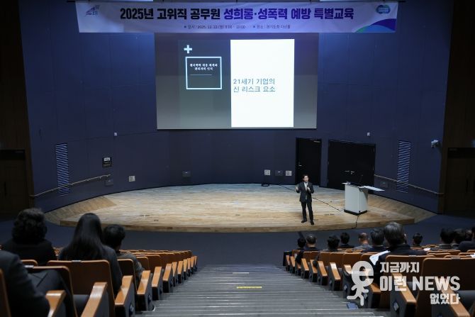 이런뉴스(e-runnews) 김삼성 기자 | 경기도는 22일 경기도청 다산홀에서 김동연 경기도지사를 포함해 고위직 공무원 약 50명을 대상으로 ‘직장 내 성희롱·폭력 예방 특별교육’을 실시했다.
