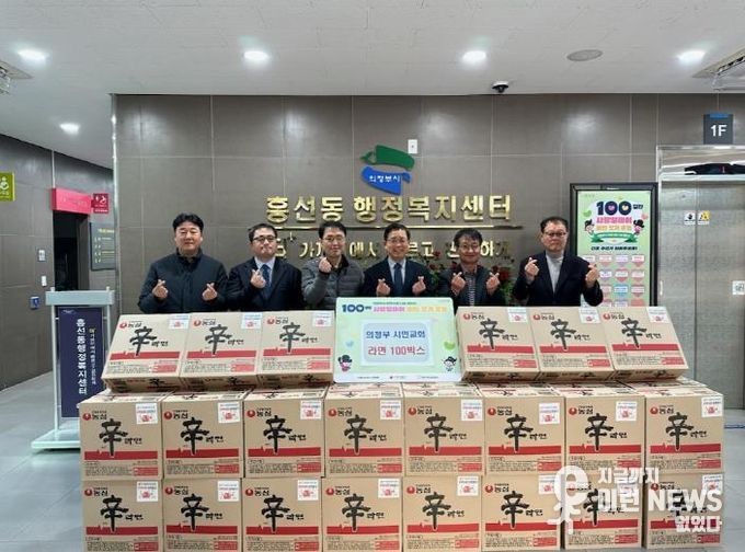 이런뉴스(e-runnews) 김삼성 기자 | 의정부시 흥선동행정복지센터는 12월 18일 의정부시민교회가 ‘100일간 사랑릴레이 배턴 잇기’에 동참해 라면 100상자를 기탁했다고 밝혔다.