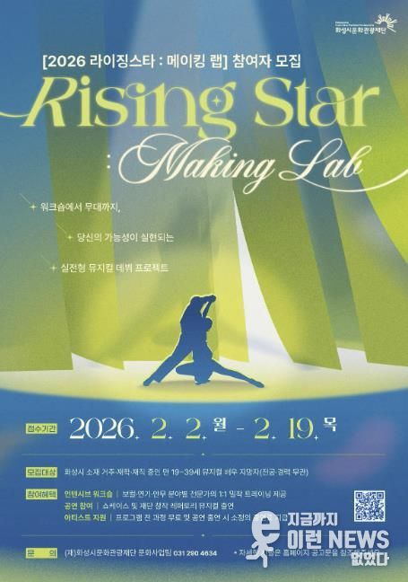 이런뉴스(e-runnews) 김삼성 기자 | (재)화성시문화관광재단은 뮤지컬 분야의 신진 인재를 발굴하고 육성하기 위한 ‘2026 라이징스타: 메이킹 랩’의 오디션 참가자를 모집한다.