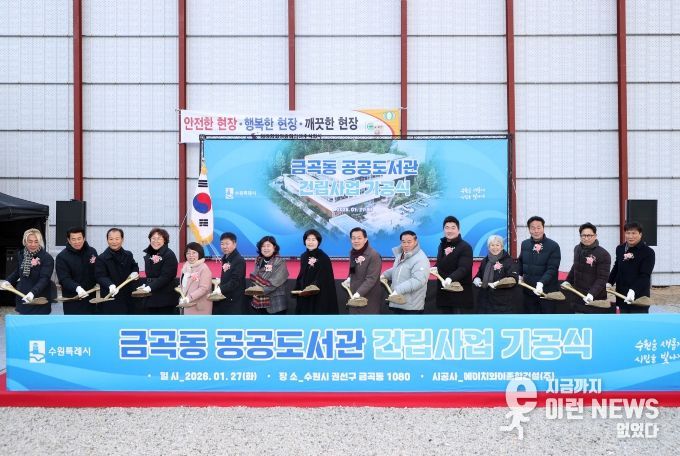 이런뉴스(e-runnews) 김삼성 기자 | 수원특례시의회 이재식 의장과 조미옥 의원(더불어민주당, 평·금곡·호매실동), 윤경선 의원(진보당, 평·금곡·호매실동), 현경환 의원(국민의힘, 파장·송죽·조원2동)은 1월 27일 오후 3시, 권선구 금곡동 전 크레파스어린이공원 부지에서 열린 금곡동 공공도서관 기공식에 참석해 도서관 건립의 첫 출발을 함께했다.
