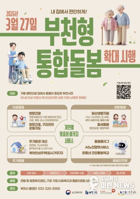 이런뉴스(e-runnews) 김삼성 기자 | 부천시가 지난 27일 전국적으로 시행된 '의료·요양 등 지역 돌봄의 통합지원에 관한 법률'에 맞춰 ‘부천형 통합돌봄’을 본격적으로 확대한다.