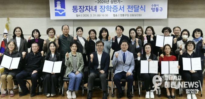 이런뉴스(e-runnews) 김삼성 기자 | 수원시 영통구는 지난 3월 31일 구청 상황실에서 2026년 상반기 통장자녀 장학증서 전달식을 개최했다.