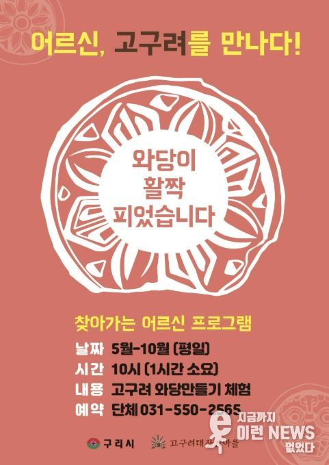 구리시 관계자는 “이번 프로그램을 통해 어르신들이 고구려 문화를 직접 체험하며 활력 있는 시간을 보내시길 바란다”라며 “세대 간 문화 향유 격차를 해소하고 우리 역사에 대한 자긍심을 높이는 계기가 되길 기대한다”라고 밝혔다.