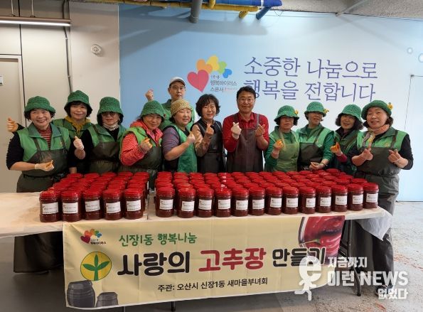 이런뉴스(e-runnews) 김삼성 기자 | 오산시 새마을지도자 신장1동 부녀회가 지난 31일 신장1동 행정복지센터 지하식당에서 직접 담근 고추장을 취약계층에 전달하며 이웃사랑을 실천했다고 밝혔다.