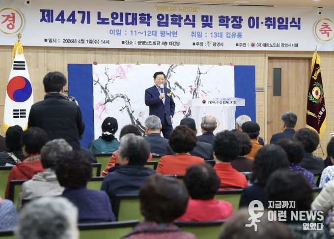 이런뉴스(e-runnews) 김삼성 기자 | 광명시가 1일 대한노인회 광명시지회(지회장 박종애) 주관으로 광명노인회관에서 제44기 노인대학 입학식을 열고, 222명 어르신의 새로운 배움길을 열었다.