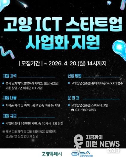 이런뉴스(e-runnews) 김삼성 기자 | 고양산업진흥원이 ‘2026년 고양 ICT 스타트업 사업화 지원사업’ 참여 기업을 모집한다.