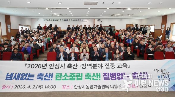안성시 관계자는 “이번 교육이 농가의 환경 관리와 방역 역량을 한층 강화하는 계기가 됐길 바란다”며, “앞으로도 철저한 방역 체계와 저탄소 축산 정책을 통해 대한민국을 선도하는 지속 가능한 청정 축산 도시를 만들어 가겠다”고 밝혔다.