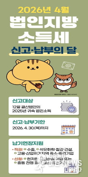 이런뉴스(e-runnews) 김삼성 기자 | 안성시는 12월 결산법인의 2025년 귀속 법인소득에 대한 ‘법인지방소득세 집중신고기간’을 4월 1일(수)부터 4월 30일(목)까지 운영한다고 밝혔다.