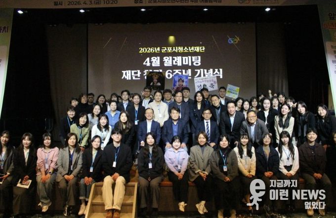 이런뉴스(e-runnews) 김삼성 기자 | 군포시청소년재단은 4월 3일 군포시청소년수련관 청소년어울림극장에서 4월 월례미팅을 열고, 창립 6주년을 맞아 미래도약 의지를 다지는 자리를 마련했다. 이날 행사에는 군포시청소년재단 임직원, 화용선차예문화연구소 등 80여 명이 참석했다.