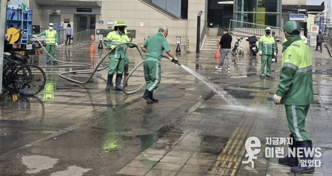 참여자들은 수원역 광장과 환승센터 일대에 적치된 폐기물을 수거하고 살수차를 활용한 물청소를 실시하는 등 환경 개선 활동에 힘을 모았으며, 고압세척장비를 활용해 보도 표면은 물론 오염이 쉽게 누적되는 구간까지 세심하게 세척 작업을 진행하여 쾌적한 거리 환경 조성에 앞장섰다.