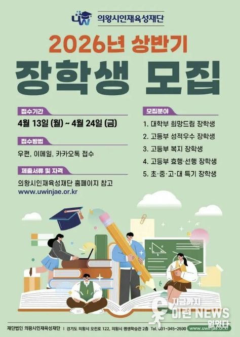 이런뉴스(e-runnews) 김삼성 기자 | 의왕시인재육성재단이 2026년 상반기 장학생을 모집한다.