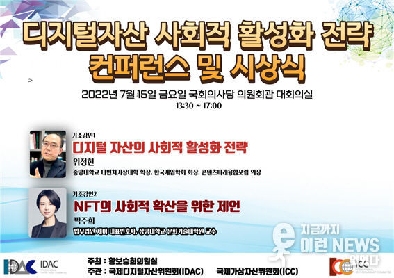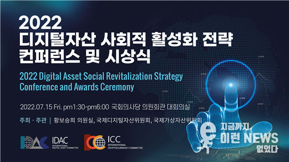 이런뉴스(e-runnews) 김삼성 기자 | ‘디지털자산 사회적 활성화 전략 컨퍼런스 및 시상식’ 이 7월 15일 국회의사당 의원회관 대회의실에서 오후 1시 30분부터 오후 6시까지 개최된다.