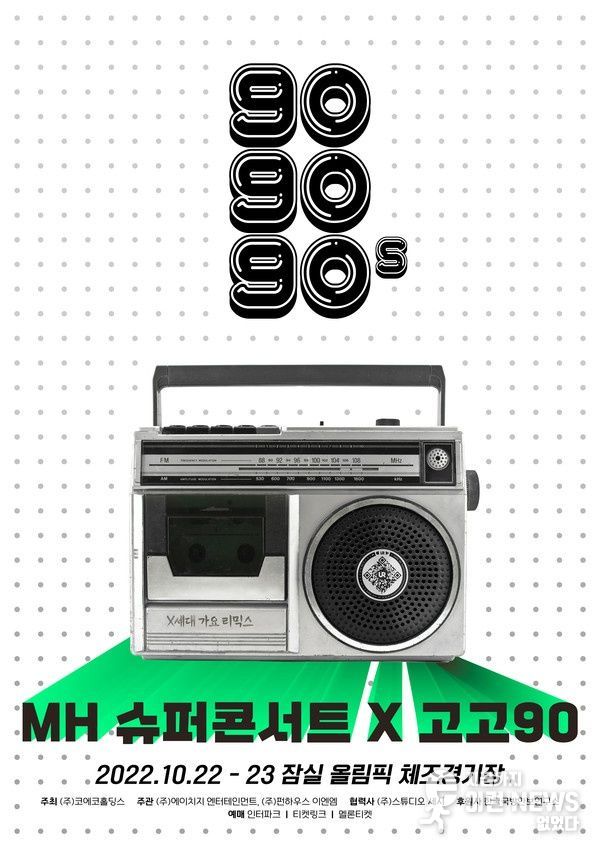 이런뉴스(e-runnews) 김삼성 기자 | ㈜코에코홀딩스는 2022년 10월 22일~23일 이틀 동안 올림픽공원 잠실체조경기장에서 [ MH super concert×gogo90`s ] 콘서트를 개최한다.