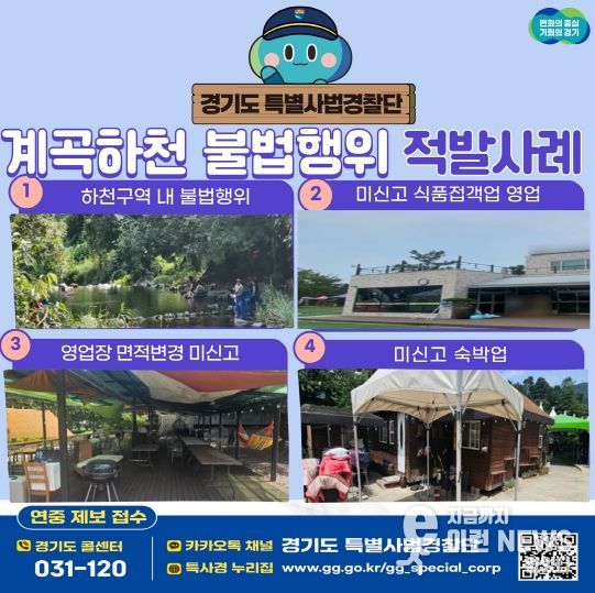 계곡을 사유지처럼 점유하며 불법 영업을 벌이는 행위가 여름 피서철마다 반복되고 있는 가운데, 경기도가 지난 7월 21일부터 8월 20일까지 계곡·하천 휴양지를 집중 수사해 총 12건의 불법행위를 적발했다.