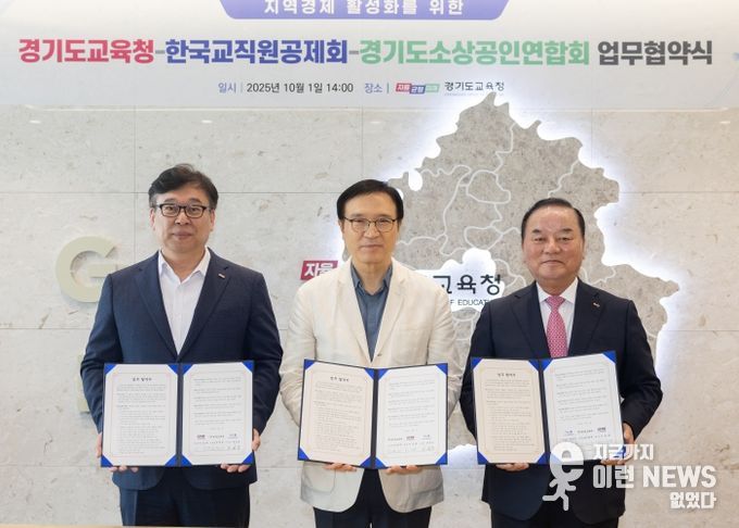 이런뉴스(e-runnews) 김삼성 기자 | 경기도교육청이 1일 남부청사에서 경기도소상공인연합회, 한국교직원공제회와 ‘지역경제 활성화를 위한 상생 업무협약’을 체결했다.