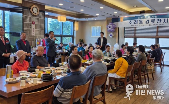 이런뉴스(e-runnews) 김삼성 기자 | 군포시 수리동 주민자치회(회장 고진해)는 제29회 노인의 날을 맞아 지난 10월 2일 수리동 어르신들을 대상으로 경로잔치를 개최했다. 이번 행사는 하은호 군포시장, 이학영 국회부의장 등 여러 내빈과 수리동 직능단체장들이 어르신 100여 명과 뜻깊은 자리를 함께했다.