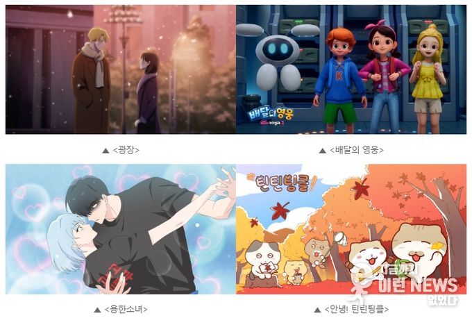 이번 상영작은 국내·외에서 주목받은 화제작들이 다채롭게 상영된다. 제49회 안시국제애니메이션영화제 ‘콩트르샹’ 부문 수상작인 김보솔 감독의 장편 애니메이션 '광장'을 비롯해, 온 가족이 함께 즐길 수 있는 뮤지컬 애니메이션이자 대표적인 K-키즈 콘텐츠인 ‘캐리’ 시리즈의 두 번째 극장판 '배달의 영웅'이 상영된다. 또한 네이버 웹툰 원작을 바탕으로 라프텔에서 오리지널 애니메이션으로 제작된 '용한소녀', 고양이 캐릭터들의 우애와 가족애를 따뜻하게 그린 '안녕! 틴틴팅클'도 함께 만나볼 수 있다.