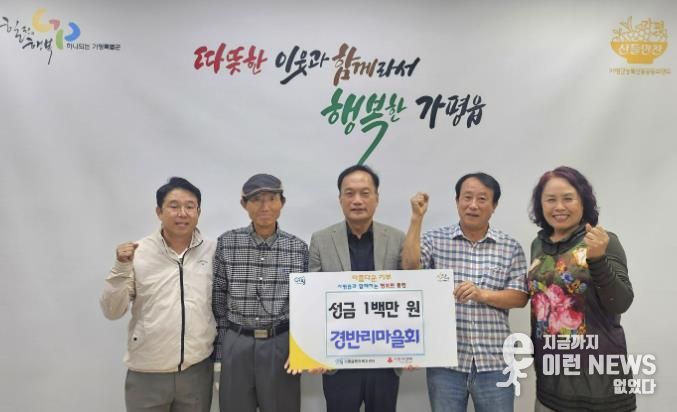 이런뉴스(e-runnews) 김삼성 기자 | 가평군 가평읍은 최근 경반리 마을회에서 취약계층 이웃을 돕기 위해 성금 100만 원을 기탁했다고 밝혔다.