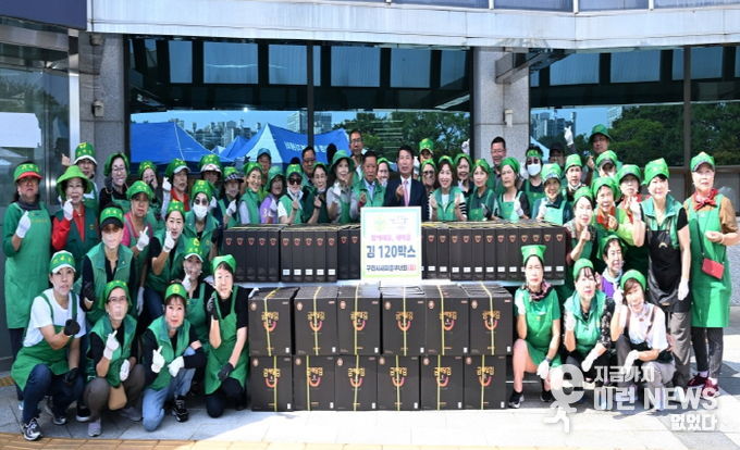 이런뉴스(e-runnews) 김삼성 기자 | 구리시 새마을부녀회는 지난 2일 구리시청 민원 광장에서 소외되고 어려운 이웃들이 따뜻한 명절을 보낼 수 있도록 ‘함께해요. 새마을, 행복한 추석 김 전달 행사’를 개최했다고 밝혔다.