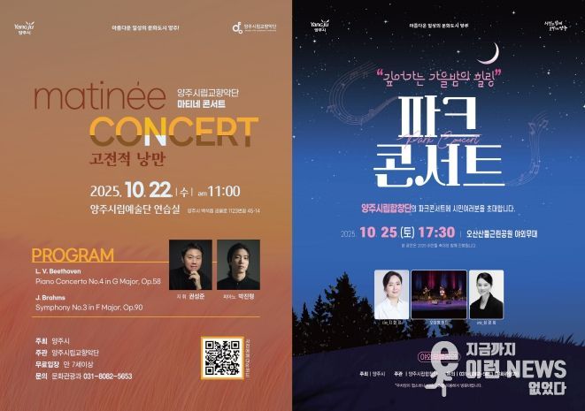 양주시가 깊어가는 가을 정취 속에서 시민들에게 품격 있는 문화예술 향유 기회를 제공하기 위해 오는 22일 ‘마티네 콘서트’와 25일 ‘파크콘서트’를 연이어 개최한다.