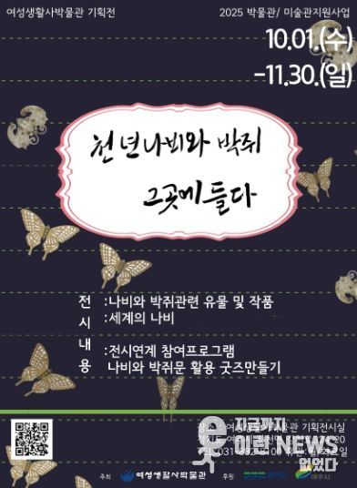 이런뉴스(e-runnews) 김삼성 기자 | 여주시에서 진행하는 2025년 박물관·미술관 지원사업의 일환으로 여성생활사박물관의 ‘천년 나비와 박쥐 그곳에 들다’ 전시가 10월 1일부터 11월 30일까지 개최된다.