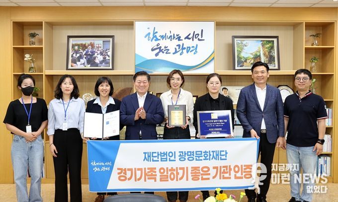 이런뉴스(e-runnews) 김삼성 기자 | (재)광명문화재단은 가족친화적인 조직문화 조성과 복지 제도 운영의 우수성을 인정받아, 경기도로부터 ‘2025년 가족친화 일하기 좋은 기업’ 인증을 받았다.
