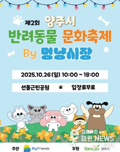 이런뉴스(e-runnews) 김삼성 기자 | ㈜빅프렌즈가 주관하는 ‘2025년 양주시 반려동물 문화축제’가 오는 26일 옥정동 선돌근린공원에서 열린다.
