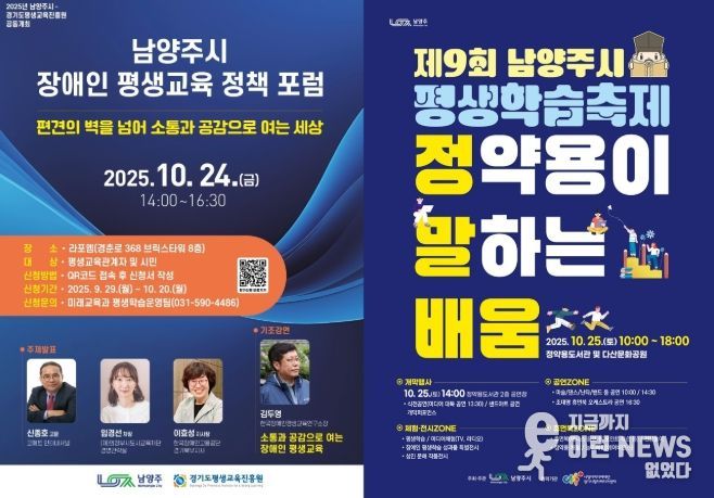 이런뉴스(e-runnews) 김삼성 기자 | 남양주시는 장애인과 비장애인이 함께 어우러지는 평생학습 환경 조성과 모두를 위한 평생학습 가치공유 및 활성화를 위해 오는 24일 ‘장애인 평생학습포럼’, 25일 ‘평생학습축제’를 연이어 개최한다고 밝혔다.