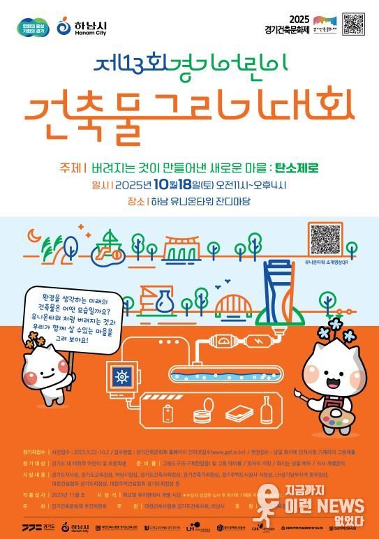 건축에 관심 있는 어린이들이 참가하는 ‘어린이건축물그리기대회’도 10월 18일 유니온타워 야외 잔디마당에서 진행된다. 이번 대회의 주제는 ‘버려지는 것이 만들어낸 새로운 마을 : 탄소제로’로, 경기도 내 미취학 아동과 초등학생이 참여할 수 있다. 대회를 통해 아이들은 자신만의 상상력을 발휘해 지속 가능한 미래의 건축물을 그리며, 건축에 대한 흥미와 이해를 높일 수 있을 것이다.