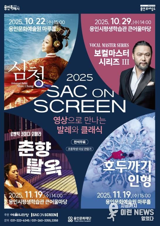 이런뉴스(e-runnews) 김삼성 기자 | 용인문화재단은 2025년 ‘SAC ON SCREEN’ 사업의 일환으로 '영상으로 만나는 발레와 클래식'을 무료 상영한다고 밝혔다.