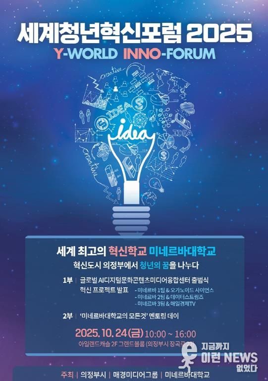 이런뉴스(e-runnews) 김삼성 기자 | 의정부시는 10월 24일 오전 10시, 아일랜드캐슬 2층 그랜드볼룸에서 ‘세계청년혁신포럼 2025(Y-WORLD INNO-FORUM)’를 개최한다.
