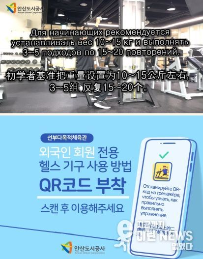 안내 내용은 시설 운영시간, 이용수칙, 헬스기구 사용법 등 다양한 정보를 포함하고 있으며, 특히 헬스기구 사용법은 영상으로 제공돼 러시아어와 중국어를 사용하는 주민에게 실질적인 도움을 주고 있다.