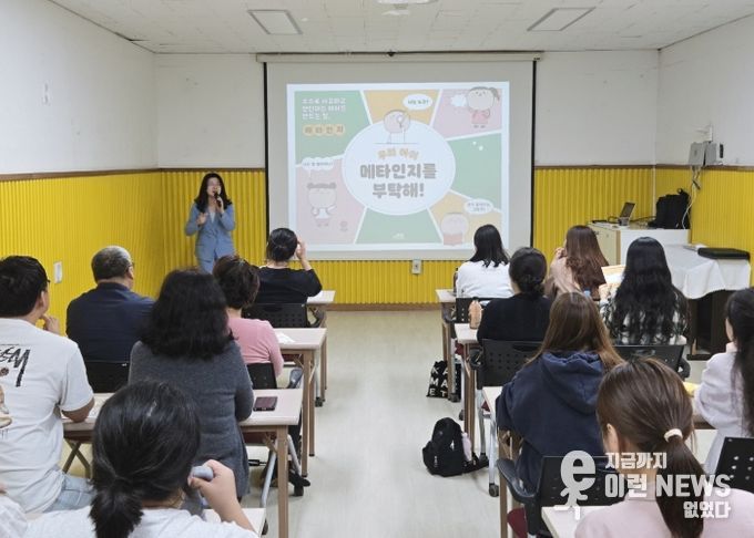 이날 교육은 '우리 아이 메타인지를 부탁해'라는 주제로 조기쁨 강사(영유아 부모교육 전문강사)가 진행하며 ‘내가 얼마나 알고 있는지’를 스스로 판단하고 조절할 수 있는 능력인 메타인지에 대한 주제로 진행됐다.
