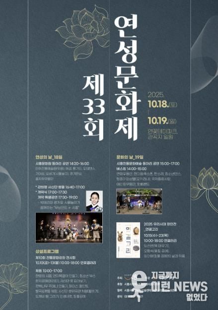 이런뉴스(e-runnews) 김삼성 기자 | 시흥시 지방보조금사업으로 시흥문화원이 주관하는 ‘2025년 제33회 연성문화제’가 오는 10월 18일부터 19일까지 이틀간 시흥 연꽃테마파크와 관곡지 일원에서 개최된다고 밝혔다.