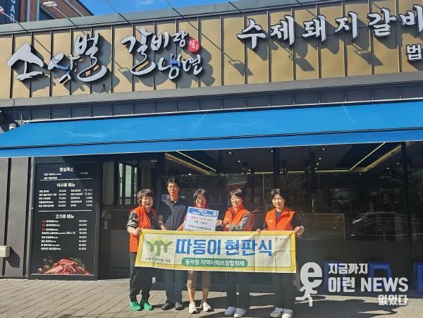 이런뉴스(e-runnews) 김삼성 기자 | 평택시 동삭동 지역사회보장협의체는 지난 15일 관내 취약계층 10가구에 월 2회 정기적으로 5가지 밑반찬을 지원할 예정인 소삿벌 법원직영점에 ‘따동이’ 5호점 현판을 전달했다.