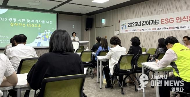 이런뉴스(e-runnews) 김삼성 기자 | 광명시는 시민과 기업의 환경·사회·지배구조(ESG) 인식 제고와 실천 역량 강화를 위해 추진한 ‘2025년 찾아가는 ESG 교육’을 지난 15일 5회차 교육을 끝으로 마무리했다.