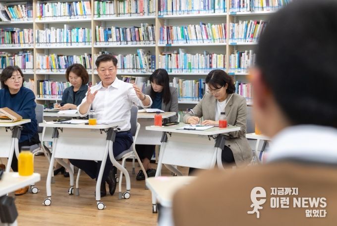 이후 도서관 ‘글사랑실’에서 열린 간담회에서는 1~2학년 학생 6명이 참여해 ‘시장님과 함께하는 충현중 이야기’를 주제로 학교의 생태활동과 공간디자인 프로젝트를 발표했다.