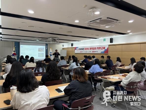 이런뉴스(e-runnews) 김삼성 기자 | 오산시는 지난 16일 오산시청 물향기실에서 본청 및 산하기관 발주 담당자 45명을 대상으로 ‘2025년 계약심사 직무교육’을 실시했다고 밝혔다.