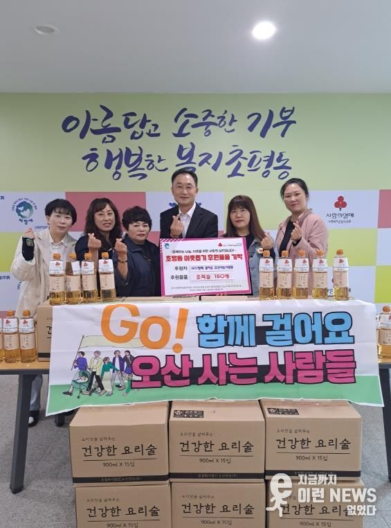 이런뉴스(e-runnews) 김삼성 기자 | 오산시 초평동은 지난 16일 시민 걷기단체 ‘GO! 함께 걸어요 오산 사는 사람들’(리더 고찬영)로부터 요리술 150병(약 50만 원 상당)을 기탁받았다고 밝혔다.