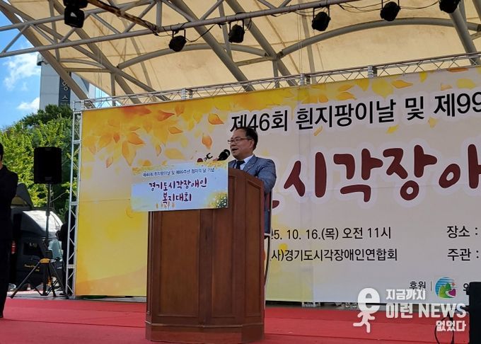 이런뉴스(e-runnews) 김삼성 기자 | 경기도의회 보건복지위원회 박재용 의원(더불어민주당, 비례)은 16일 의왕시 왕송호수공원 잔디마당에서 열린 ‘제46회 흰지팡이의 날 및 제99주년 점자의 날 기념 경기도 시각장애인 복지대회’에 참석해 경기도의회 의장상 표창장을 수여하고, 시각장애인의 권익 증진을 위한 제도 개선의 필요성을 강조했다.