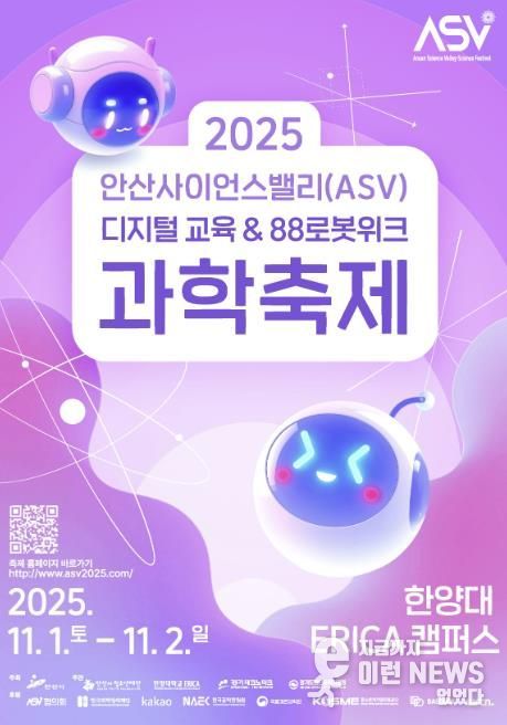 이런뉴스(e-runnews) 김삼성 기자 | 안산시는 11월 1일부터 2일까지 이틀간 한양대학교 ERICA캠퍼스에서 ‘미래와 함께하는 혁신도시 안산, ASV’라는 슬로건으로 ‘2025 안산사이언스밸리(ASV) 과학축제’를 개최한다고 22일 밝혔다.